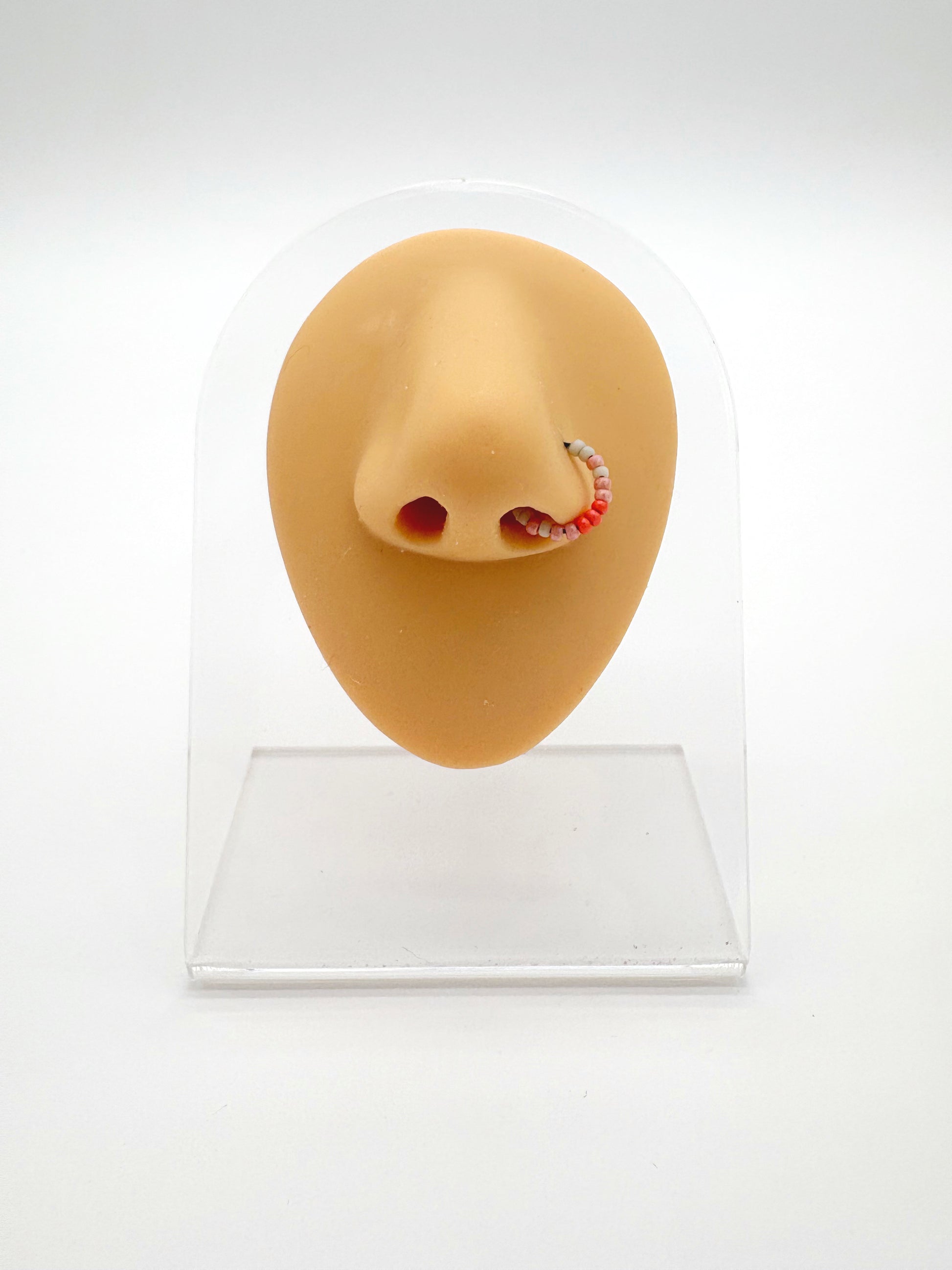All nose rings are made with stainless steel nose ring posts and seed beads. We carry most nose ring gauges and millimeters, but on the off chance you don't see your size please feel free to message.